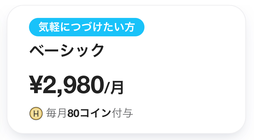HafHは、毎月定額を支払うことでコインが付与され、