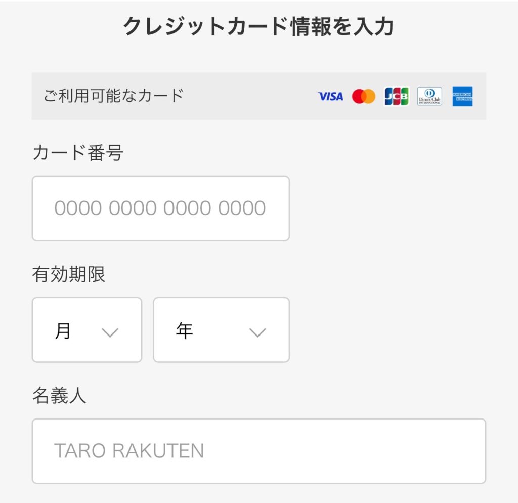 ②クレジットカード情報を入れる